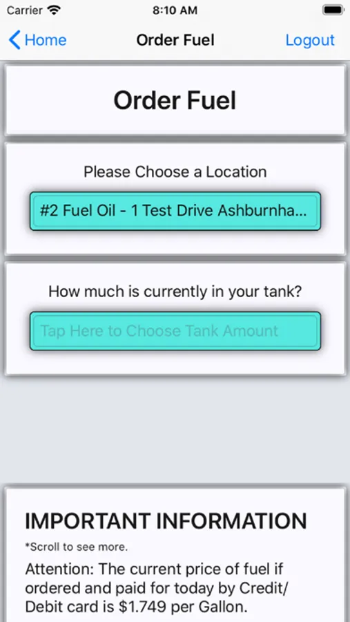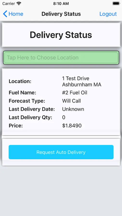- View your delivery status for a particular location. This will give you information about the fuel for a particular location, along with last and next delivery date.
