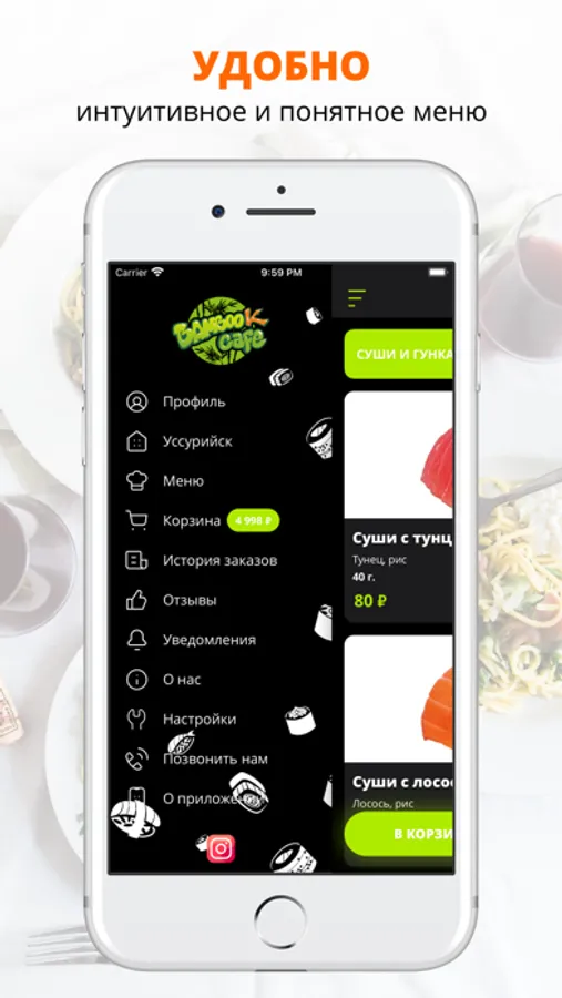 BambookCafe - современная доставка еды в г.Уссурийске. Для Вас пицца, роллы, суши, ВОК, а также другие блюда итальянской, японской, паназиатской кухни.