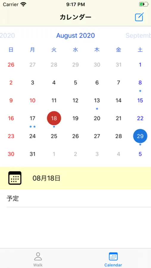 ・日毎に予定を記入でき、予定の多い日もわかりやすく表示