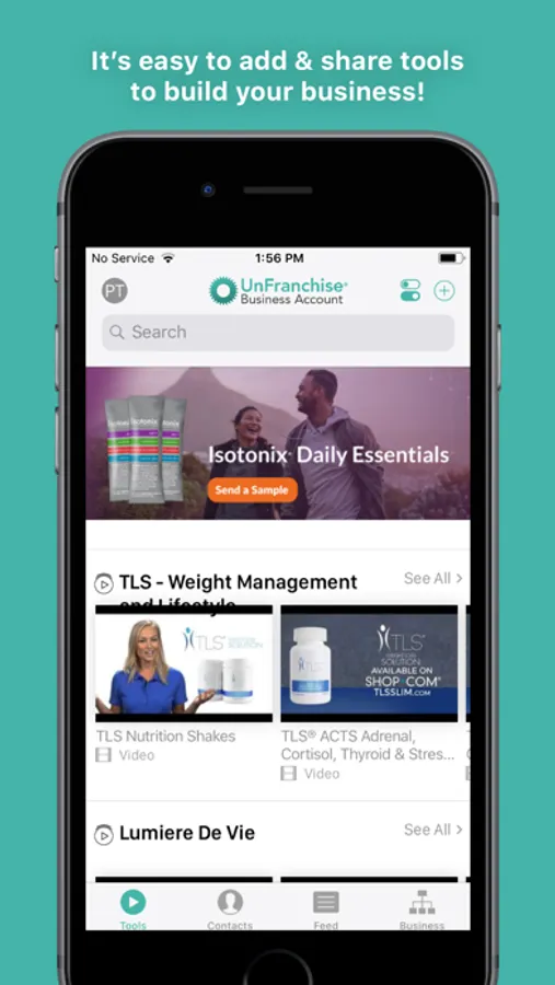 With the UnFranchise Marketing App, you can easily share your way to success with tools that create word-of-mouth buzz and complement belly-to-belly efforts! Connect with new contacts and interact with your team by sharing exclusive, corporate-approved tools. You’ll have a vast array of marketing materials like videos, images, and more—all right at your fingertips! The powerful, yet beautifully simple design, along with compelling tools, makes growing your business simpler than ever.