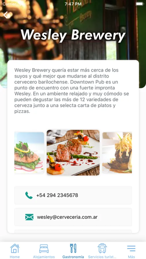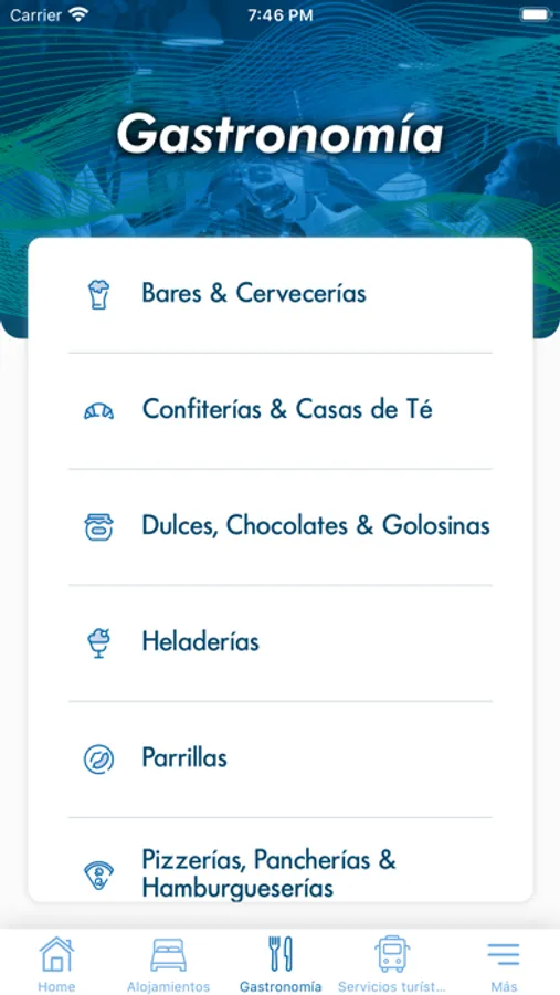 Apretando el botón de alojamiento, gastronomía, paseos y recorridos, descubrirás los lugares cerca de tu ubicación.