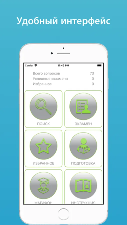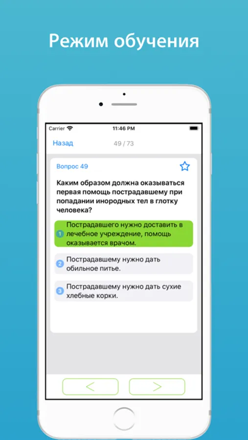 • Подготовка - Позволяет изучить вопросы в текстовом формате с отмеченными правильными ответами;