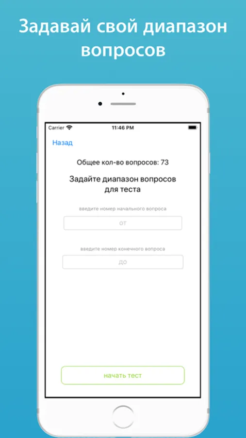 • Марафон - Предлагается ответить на все вопросы с возможностью выбора вопросов или же все вопросы, без ограничения по времени и ошибкам;