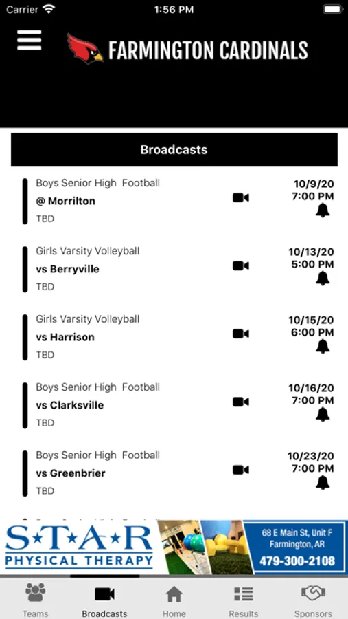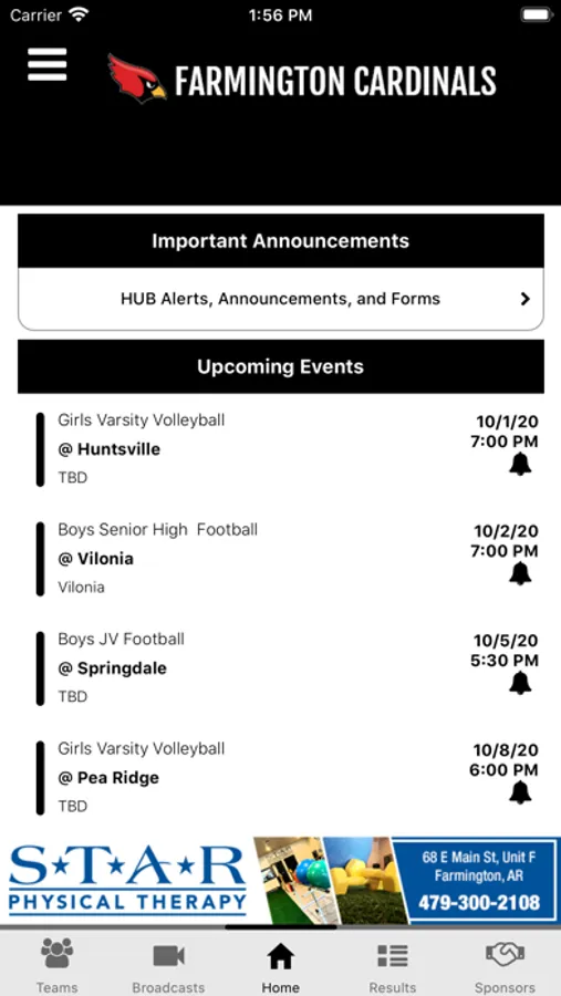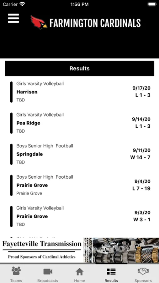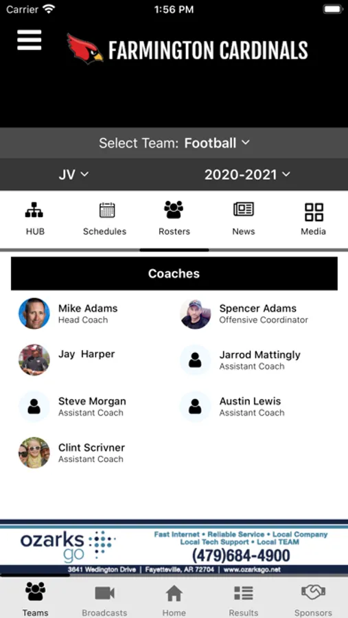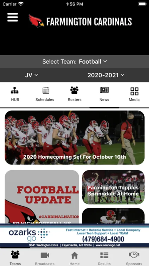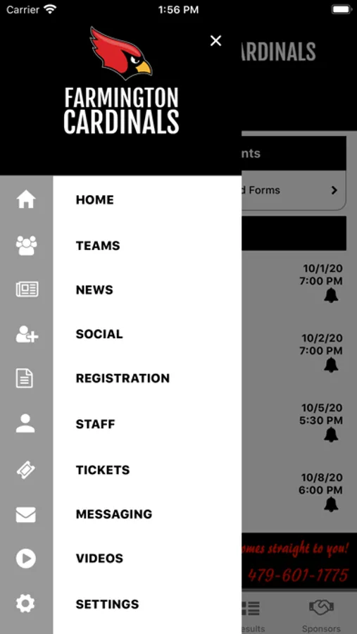- Supporters: Special Thanks to local boosters and supporters of Farmington Cardinals Athletics with a directory including website and in-app calling.