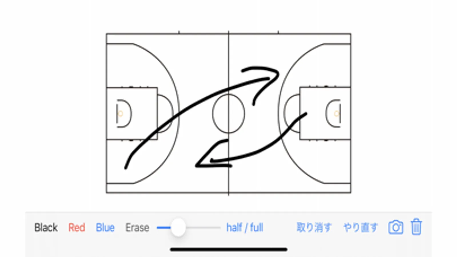 ※描画後にオールコート/ハーフコートの入れ替えをすると、手書き線は全て消去されます。