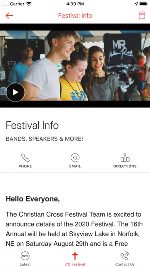 Connect and engage with the Christian Cross Festival app! You will be able to get insight into the next event at the Christian Cross Festival as well as information about bands, speakers, and much more!