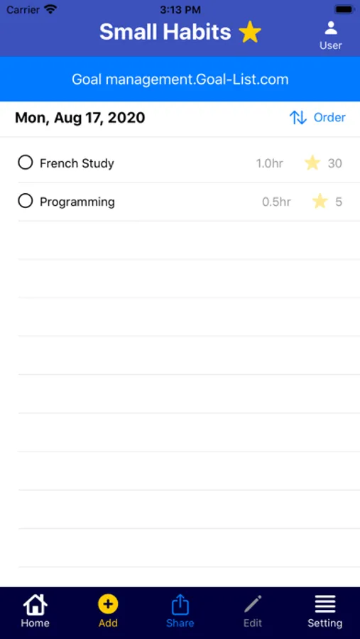You can set and record what you want to keep in habit.
