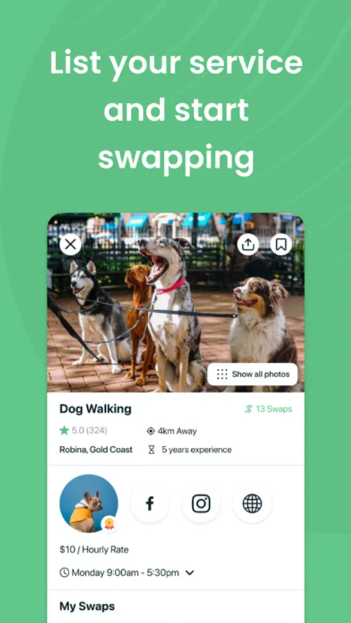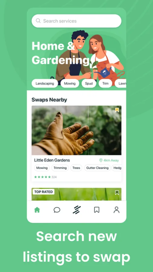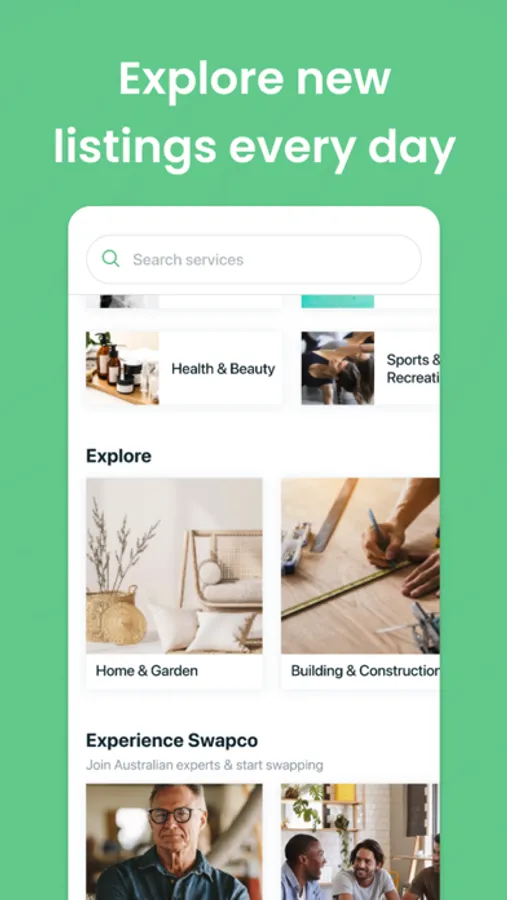 Search and swap your products or services Australia-wide. Find everything from gardening to home maintenance, building to fitness, furniture to per care directly on the app. If you have a product or service, get listed and start swapping on our app today.