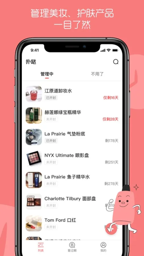 「扑哒」化妆品管家是一款简洁小巧的化妆品管理工具,拥有管理监控化妆品保质期;查询检索化妆品批号、生产日期;记录使用心得和购买建议及云同步记录等实用功能。爱美的女孩一般都会拥有很多化妆品,然而在变美的同时,管理数量庞大的化妆品会给生活徒增不少负担。为了解决这个痛点,设计「扑哒」的想法便在我们大脑里应运而生。从产品的角度,我们希望通过极致简单的设计,让女孩们可以专心变美,将繁冗复杂的管理交给「扑哒」来处理;也希望用户可以去记录、分享自己对各个化妆品、护肤品的使用体验与评价,形成一个氛围浓郁的美妆护肤社区。