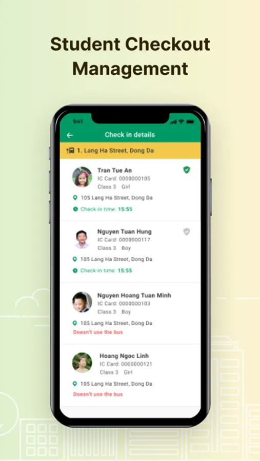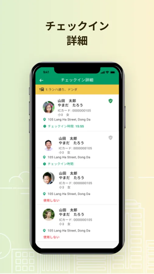 学校と保護者は情報連結して、生徒たちのバス情報を確認して、閲覧できる。