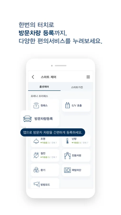 > 방범모드, 엘리베이터콜, 방문차량 예약 등