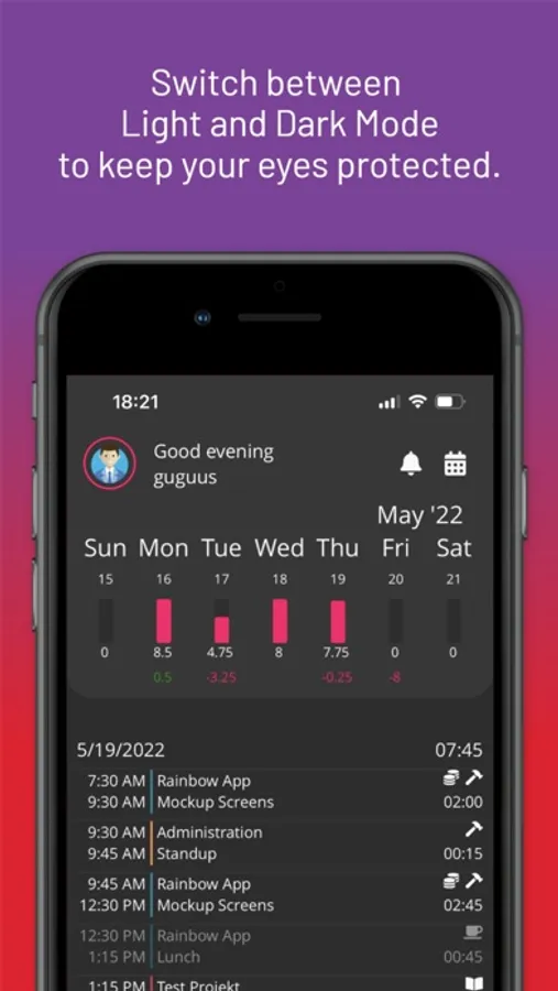 We all know that we forget to record our times, with the help of guguus next this will not happen to you in the future, because guguus next will remind you if you have not recorded your time for a while. In addition, guguus next offers you the possibility to store your work locations, whenever you arrive at your workplace, guguus next automatically starts recording your working time, when you leave the workplace again, guguus next stops the recording for you.