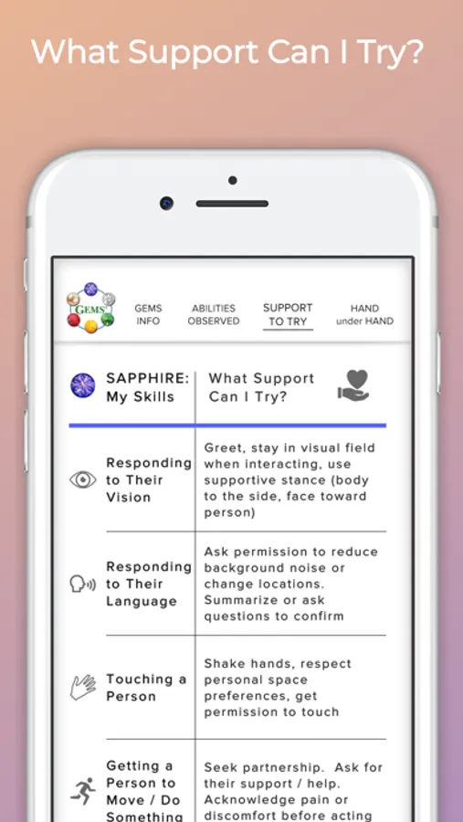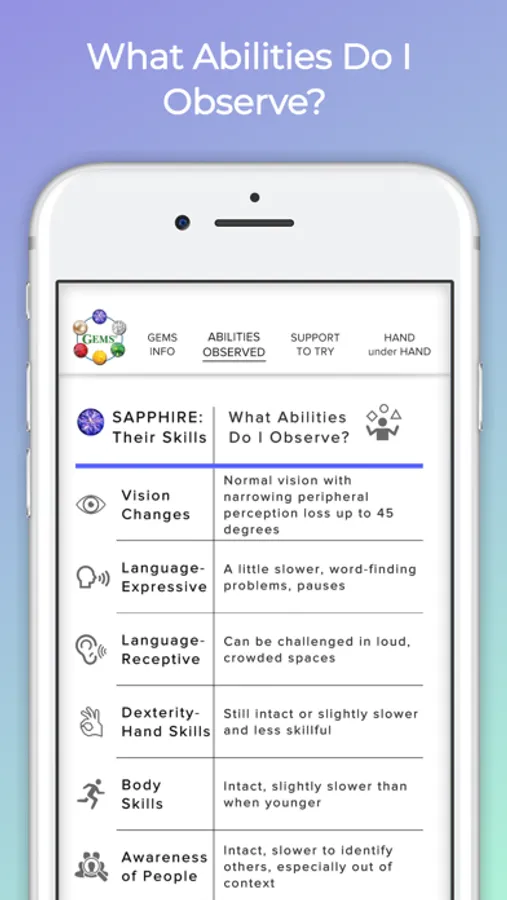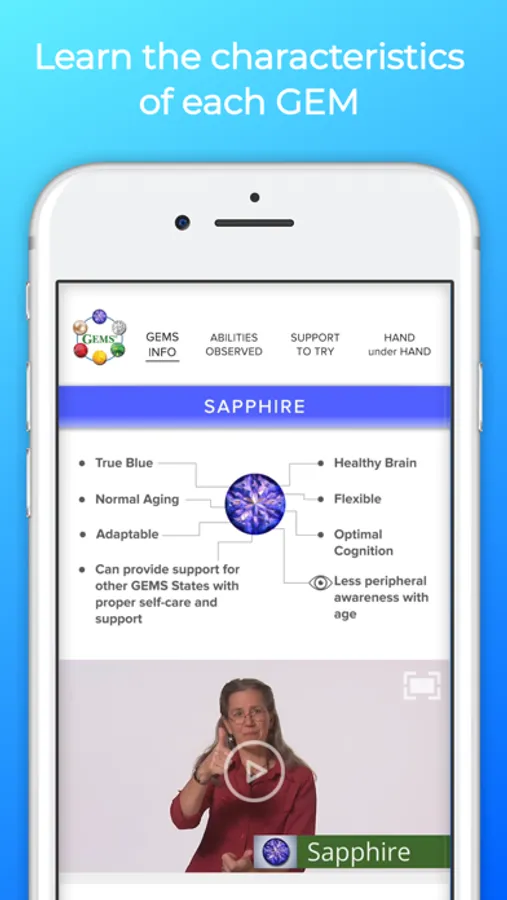 Teepa Snow and Positive Approach to Care (PAC) believe that when caring for people living with dementia those of us with healthy brains must be willing to change and adapt. With this essential GEMS app, you can join us in this mission by learning about the GEMS State Model, a scale that focuses on abilities that are retained throughout the progression of dementia. This app will help you learn the characteristics of each GEMS state and ways to provide the optimal care for that state. The app includes a dementia scale comparison chart, video clips of Teepa Snow explaining each GEMS state, and video and photos depicting our Hand-under-Hand technique to guide and assist with everyday tasks. The GEMS app will help shift the way that you understand and provide care for those living with brain change.
