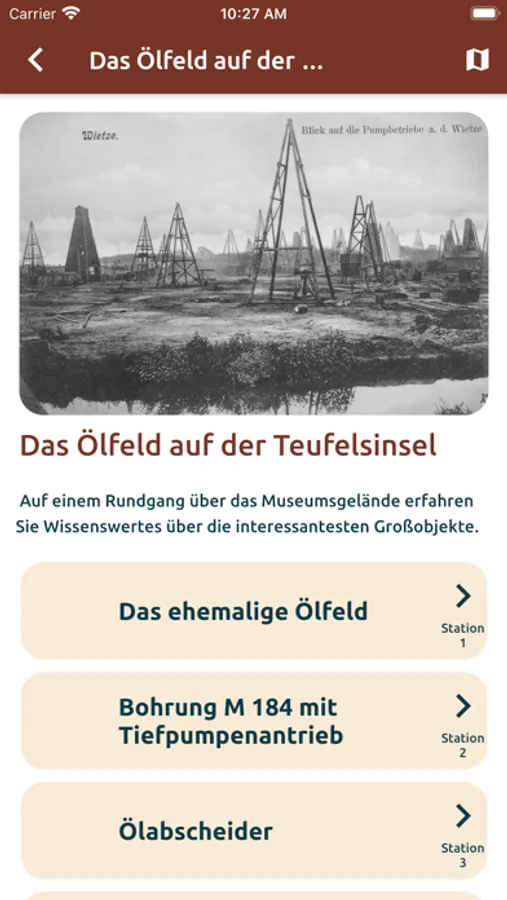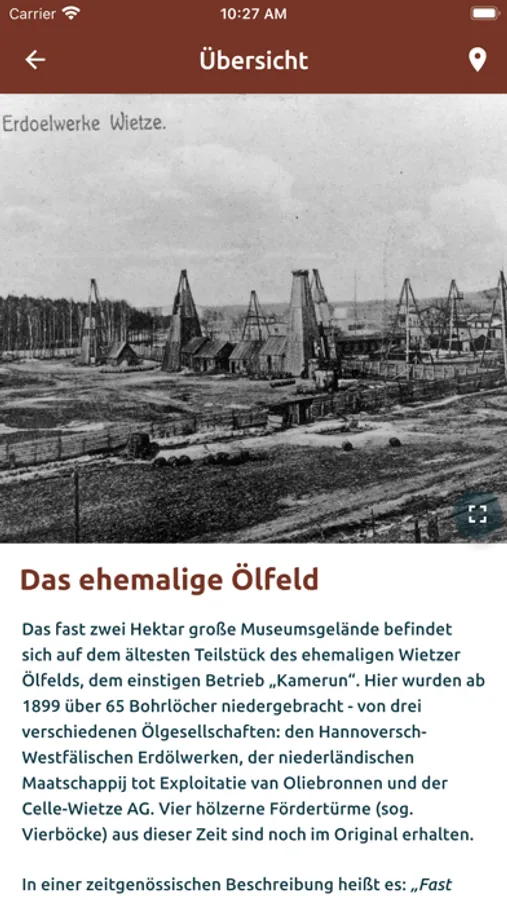 Die bedienerfreundliche App bietet neben vielfältigen, teilweise neuen historischen Fakten auch zahlreiche Fotos aus dem Archiv des Deutschen Erdölmuseums. Sie ist eine hervorragende Ergänzung zur Dauerausstellung des Museums und kann selbstverständlich auch unabhängig von einem Museumsbesuch als Informationsquelle genutzt werden.