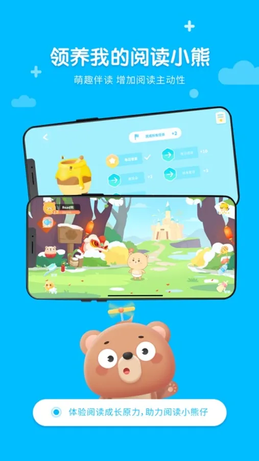 完成阅读养成体系,不仅可以获得绘本知识、语言思维,还能获得蜜罐积分进入熊仔乐园,