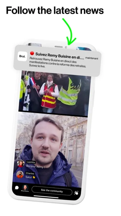 With the Brut app, take part in discussions around live news. Come and chat with experts, creators and Brut journalists. Join in the conversations via video chat by sending a message or joining in live.