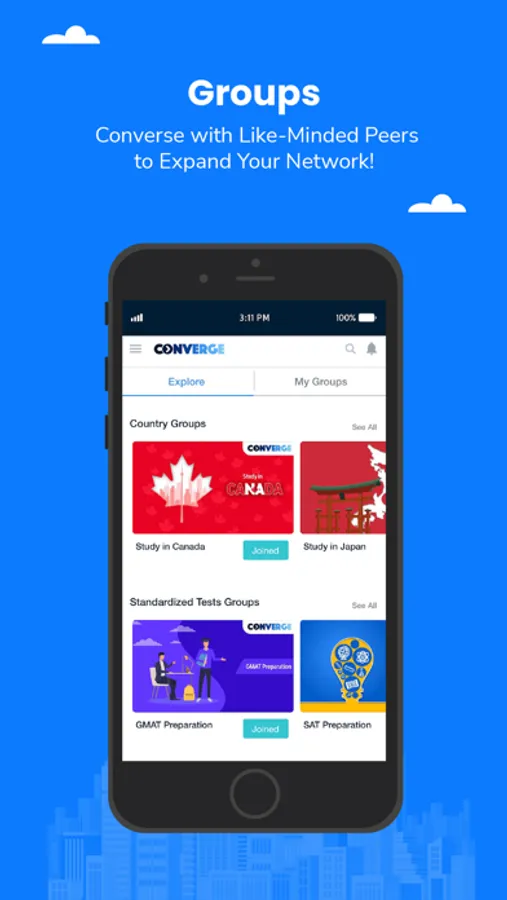 3. Groups: This peer-to-peer chat feature allows you to connect with students and assist them with their queries. Converge will not only serve as a valuable guide but also make you feel fully equipped for your study abroad expedition. With its mission-critical tips, tools, and insightful guidance, the App will set you on the right course to fructify your academic aspirations and coveted career goals.