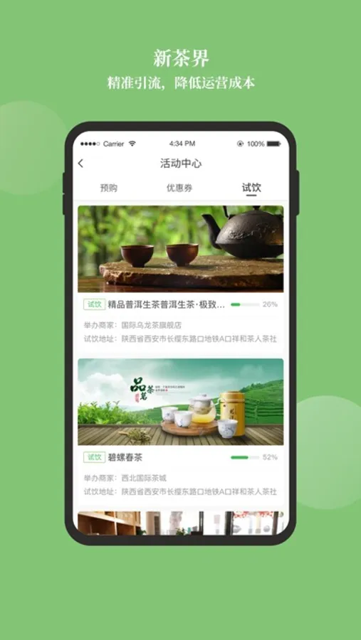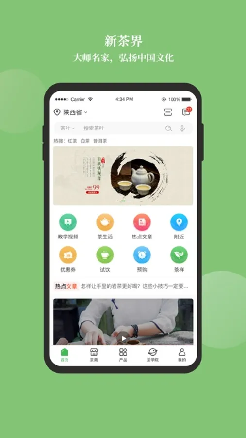 新茶界是一款专为爱茶用户打造的生活服务类平台。在这里,我们有齐全的茶叶品种,全新的传播销售模式。在这里,我们可以领取体验券、试饮、预购、茶道探讨。为你精心推荐附近的优质商家、促进茶文化的价值传播和信息分享。