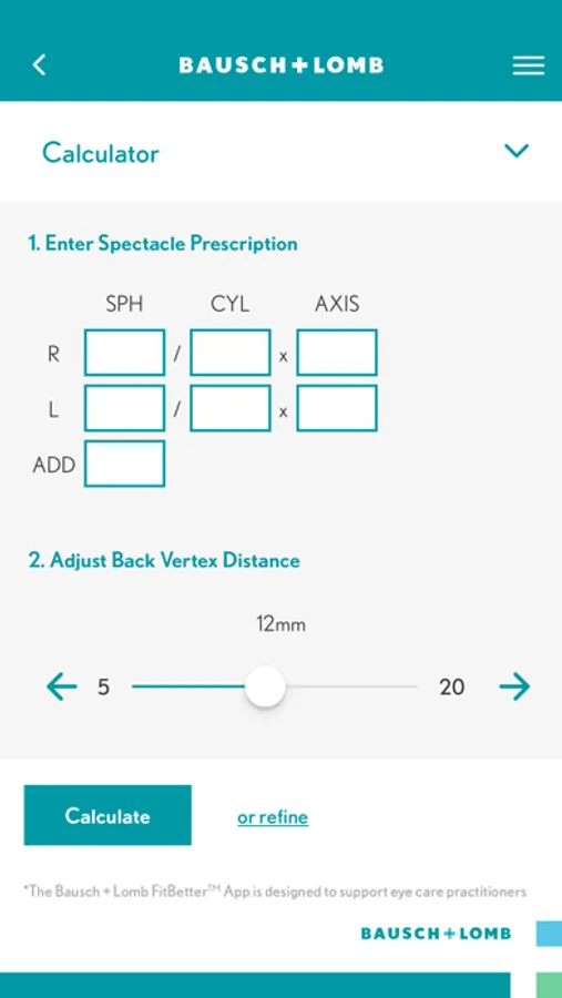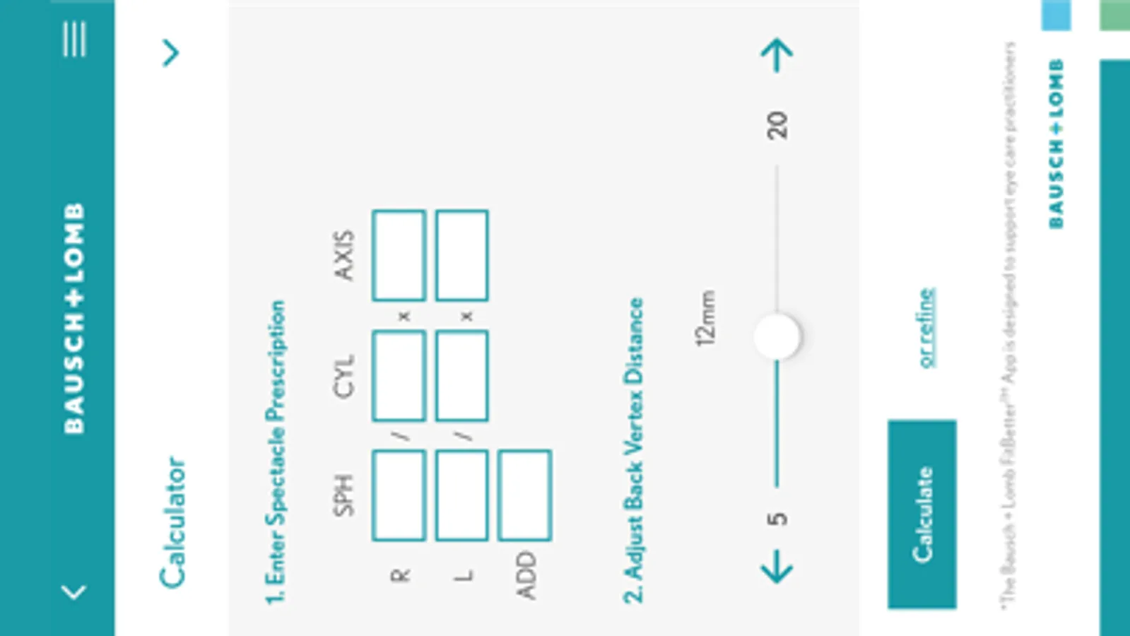 *The Bausch + Lomb FitBetter™ App is designed to support eyecare practitioners and is not intended to be used for any diagnosis or treatment recommendation or a substitute for clinical judgement or opinion of a qualified ECP. The Bausch + Lomb FitBetter™ App is not classified as medical device.