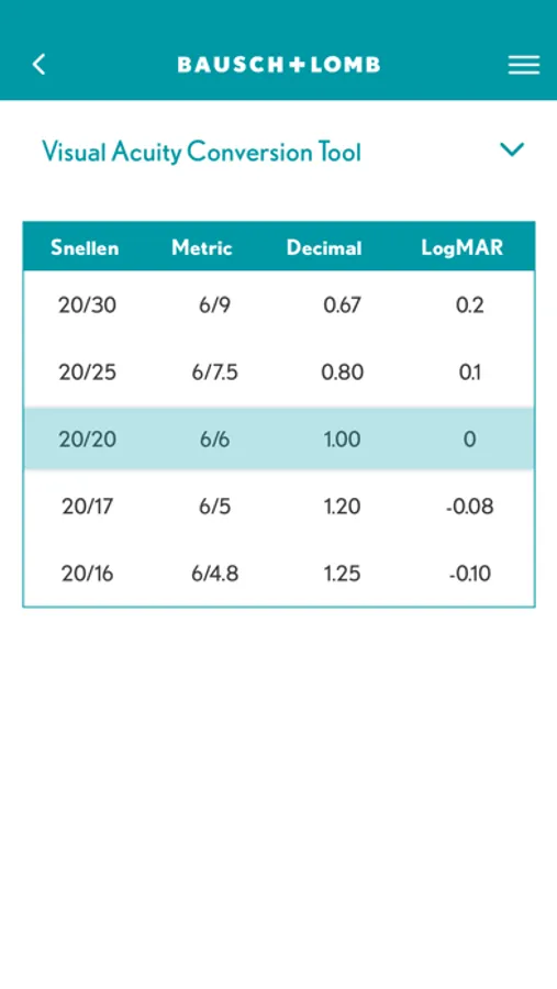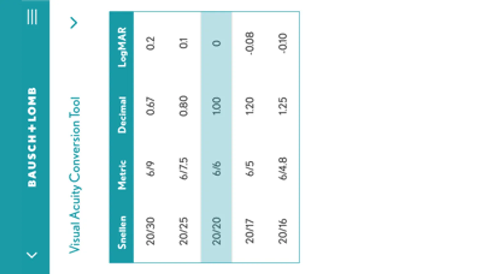 • Visual Acuity Conversion Tool - Need to convert Snellen to metric, or decimal to LogMAR? Use this handy tool to record accurate visual acuity measurements no matter what scale your chart uses.