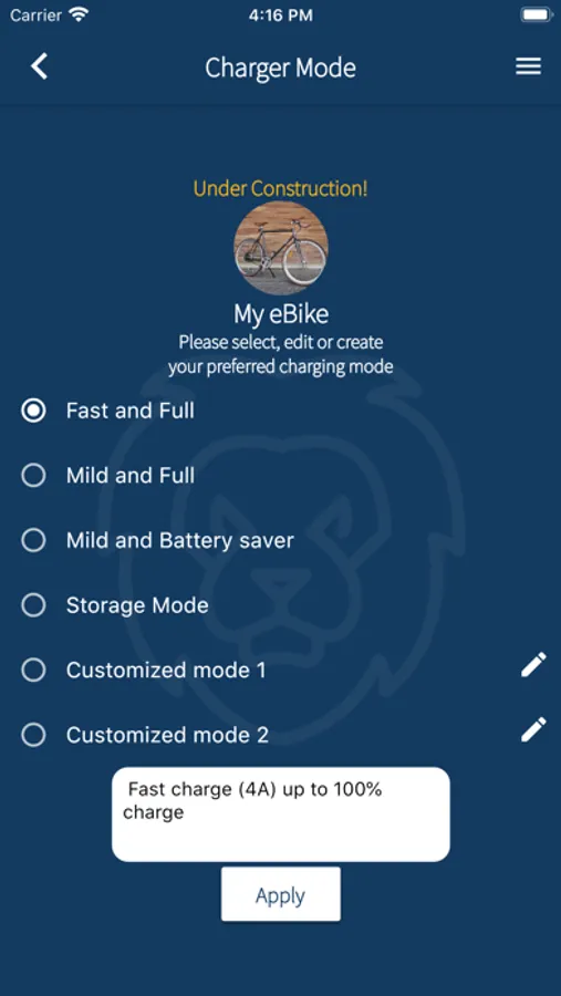 This app, individually developed for the LiON Charger, gives you complete control over your battery charging cycles. In this way, you protect and care for your expensive battery and prolong its life. Charge it quickly or gently to 100% or only to 90% - always as you need it at the moment.
