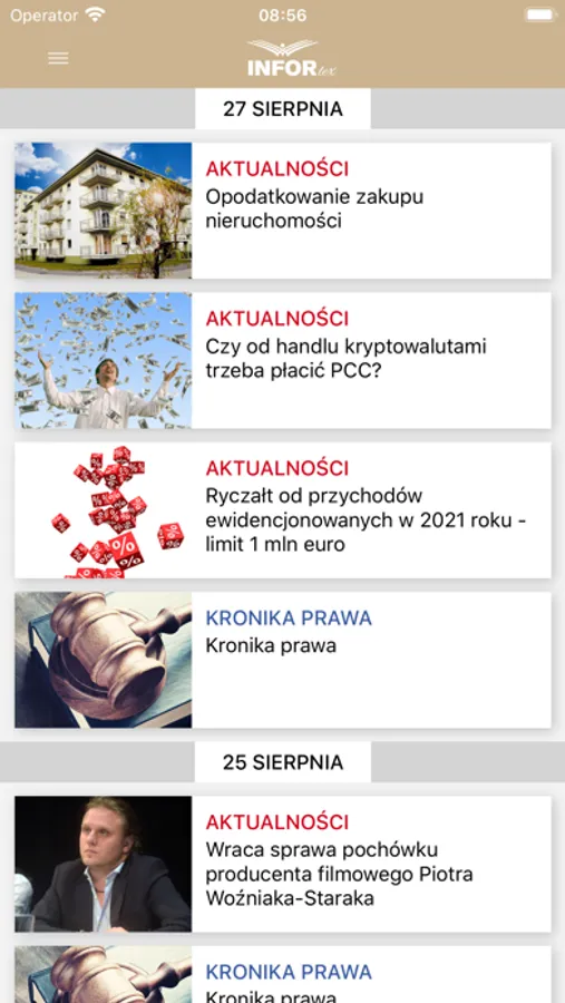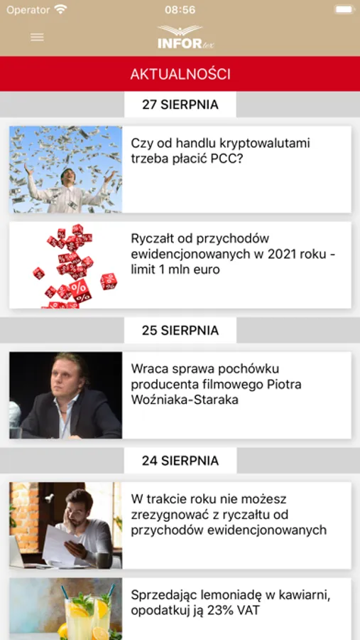 Zawiera aktualności prawne z zakresu podatków, prawa pracy i rachunkowości oraz codziennie aktualizowaną kronikę prawa. To pierwsza na rynku aplikacja tworzona przez redaktorów INFORLEX oraz dziennikarzy Dziennika Gazeta Prawna. Aplikacja w intuicyjny i praktyczny sposób pomoże Ci zapanować nad najnowszymi zmianami przepisów oraz wchodzącymi w życie aktami prawnymi.