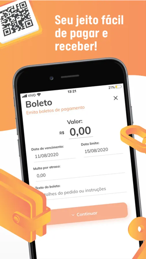 Para começar a usar basta apenas baixar o app e se cadastrar. Com ele você emite boletos de cobranças e os envia via WhatsApp, além de poder transformar seu celular em