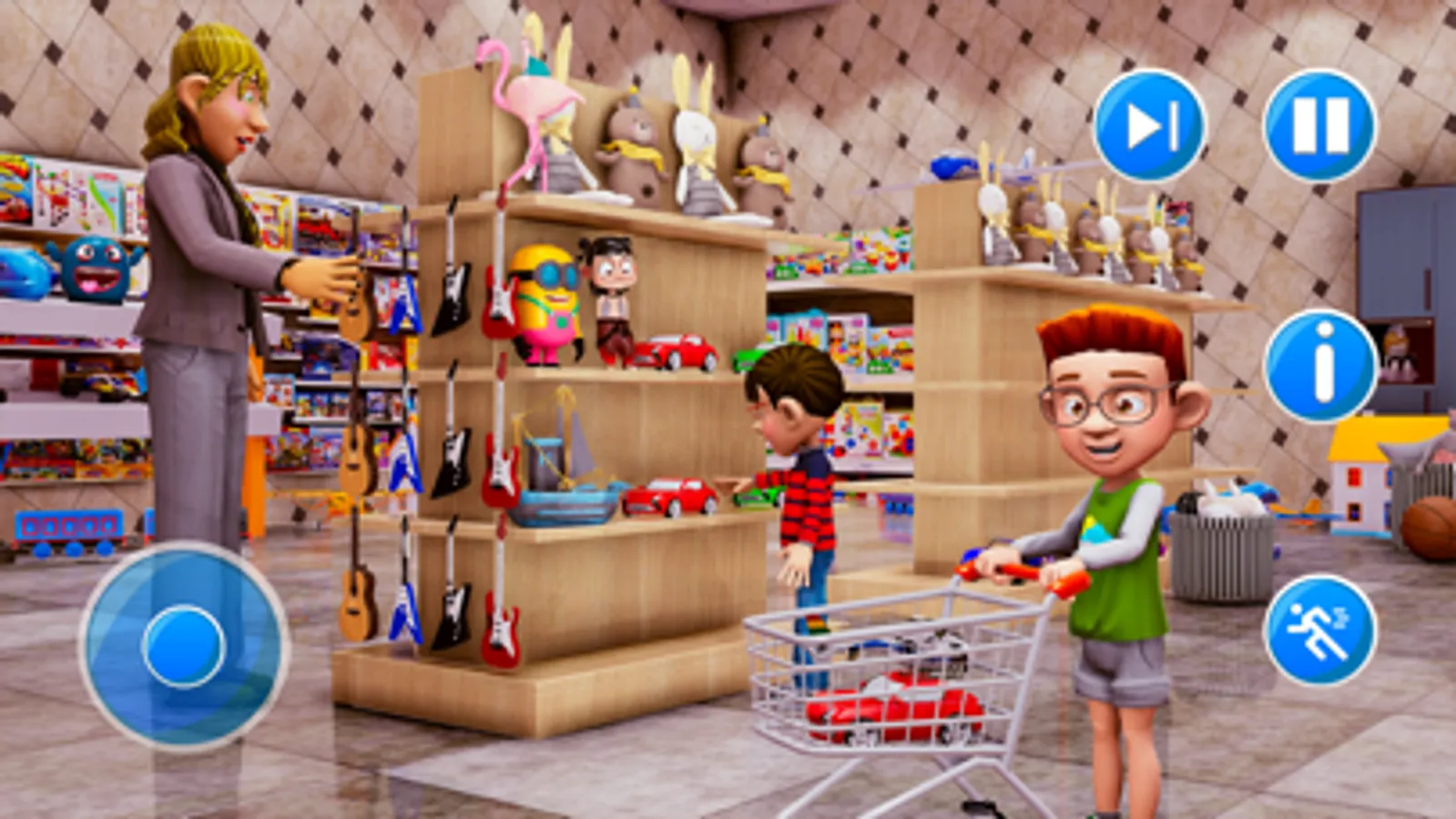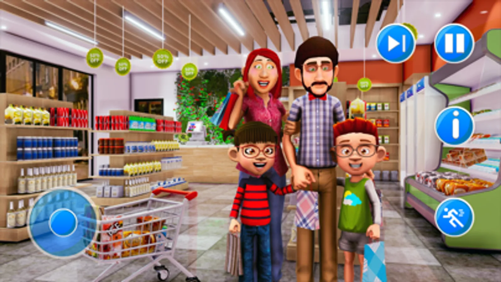 Let’s have fun superstore adventure with happy family in this virtual shopping mall game and buy whatever stuff drive thru with virtual currency you can withdraw from ATM machine. Enjoy car driving in beautiful Envirement