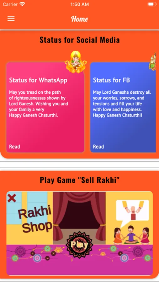 This app brings you the best collection of ganesh chaturthi e-cards for 2020. ganesh chaturthi wish e-cards for friends, brother, sister and your love. These quotes, images, gifs, e-cards & meme of ganesh chaturthi can be sent as an SMS to mobile. It can also be used as a new Image status. Send wishes to your loved ones with these ganesh chaturthi e-cards in English & english, marathi, hindi language.