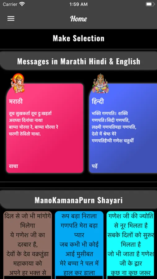 Very easy to use interface just scroll up and down to read the beautiful ganesh chaturthi sms love msgs in english, marathi, hindi and easy share to your friends.