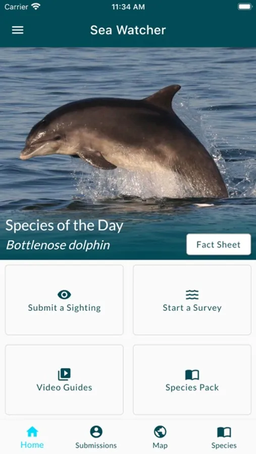 Welcome to the Sea Watcher app! Here you can log your sightings of whales, dolphins, seals and other megafauna (basking sharks, ocean sunfish and sea turtles) anywhere in the UK and European waters. Whether walking along the coast path, watching from a clifftop or spotting from a boat, the Sea Watcher app will help you identify what you saw and record all the information that will be useful to help us understand more about all these marine species in the UK and European waters!