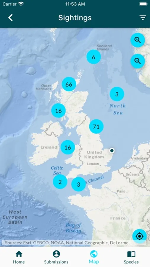 The information you collect will be used to understand which species are seen where and when, and to highlight changes over time. It is also important to record when you are looking out for marine wildlife but don’t see any. You will be able to revisit your sightings as well as find out what others have seen around the British Isles in the last week, month or year. We hope you enjoy using this app and that it helps you to become a confident and regular Sea Watcher!