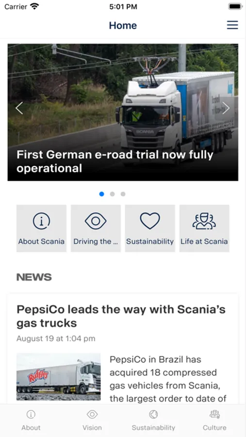 Scania is a leading provider of transport solutions, including trucks and buses for heavy transport applications combined with an extensive product-related service offering. Scania offers vehicle financing, insurance and rental services to enable our customers to focus on their core business. Scania is also a leading provider of industrial and marine engines.
