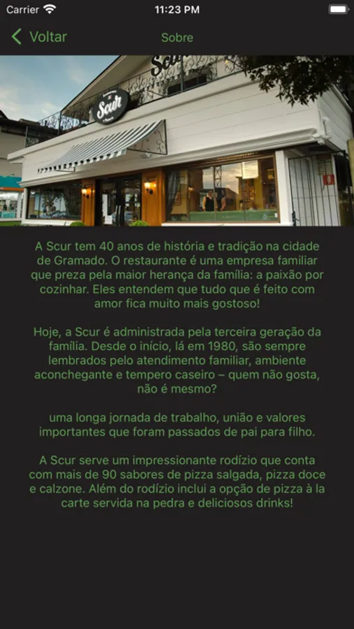 A Scur tem 40 anos de história e tradição na cidade de Gramado. O Restaurante serve um impressionante rodízio que conta com mais de 90 sabores de pizza salgada, pizza doce e calzone. Além de um rodízio que inclui a opção de pizza à la carte servida na pedra e deliciosos drinks.