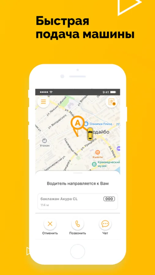 Марка, цвет, номер и время прибытия автомобиля будут известны сразу после создания заказа. После завершения поездки вы можете ознакомиться с длительностью, расстоянием и итоговой стоимостью.