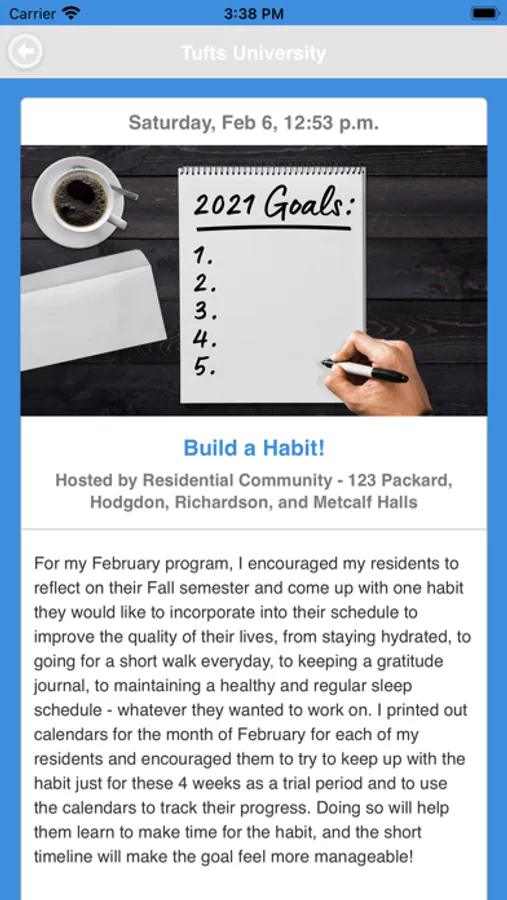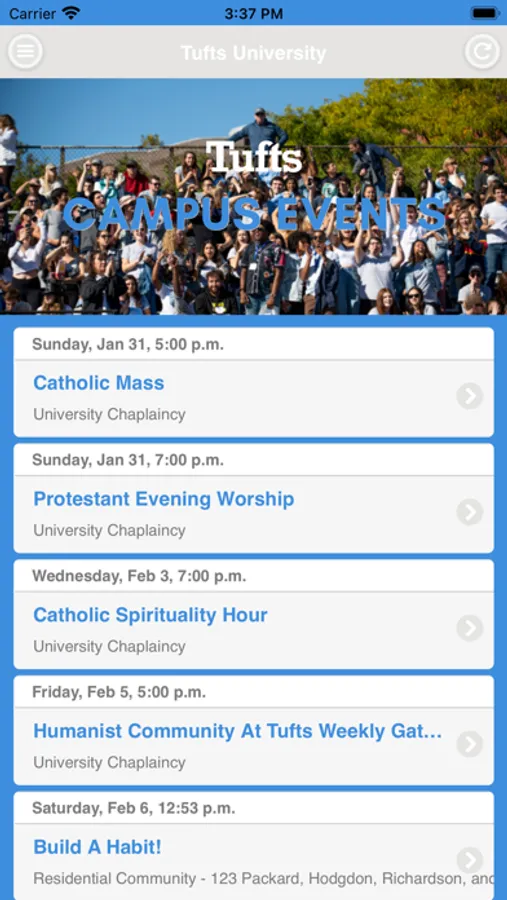 Use the Tufts University Events app to find out what events are happening and find out how you can get involved on campus!
