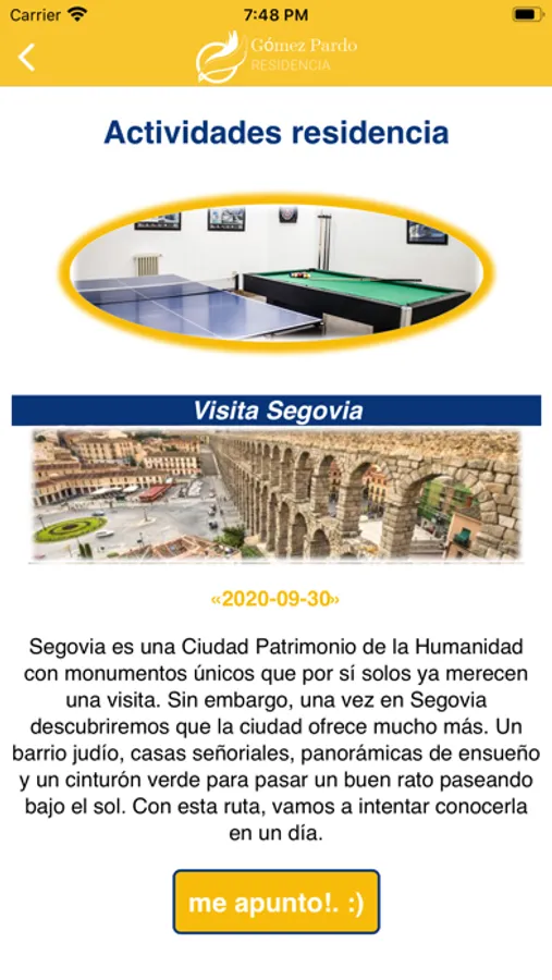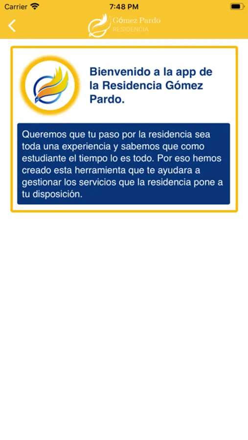 Es una app gratuita que esta pensada para uso exclusivo de los estudiantes que pasan por la Residencia Gómez Pardo.