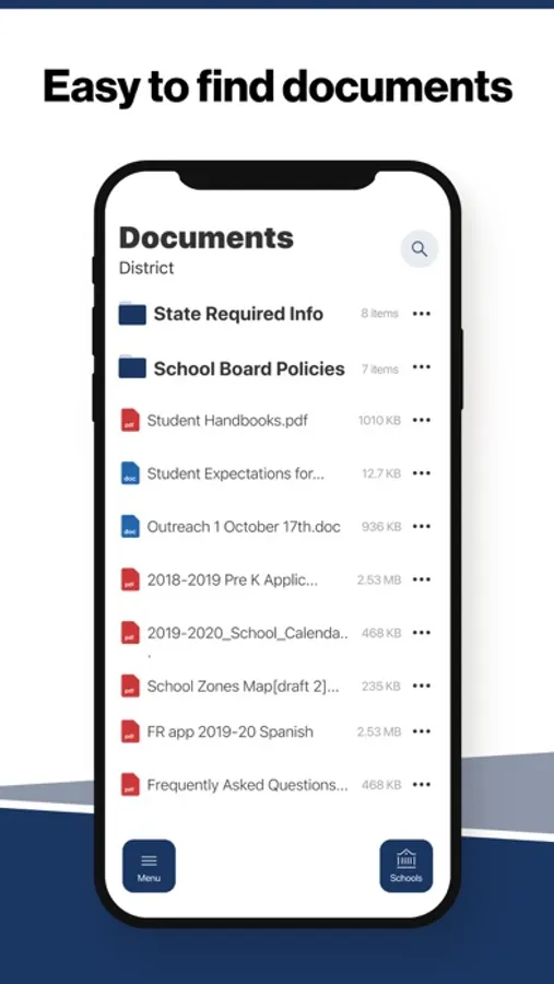 The event section shows a list of events throughout the district. Users can add an event to their calendar to share the event with friends and family with one tap.