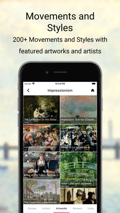 ART THROUGH THE AGES: The art content is grouped into ages, so: You can see all movements, styles, groups, schools, cultures, etc. of that age and compare the evolution of art in different parts of the world within that age.