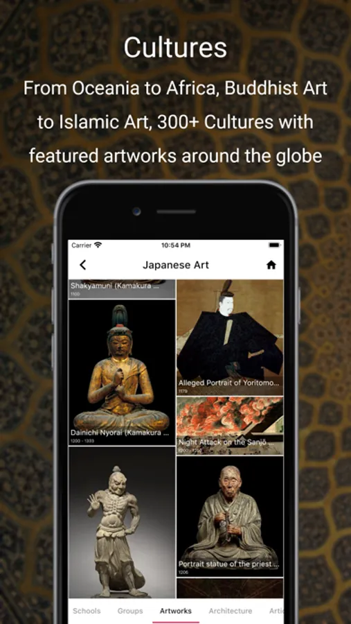 CULTURES: From Oceania to Africa, China to Native Americans, Buddhist Art to Islamic Art, more than 300 cultures with featured artworks around the globe.