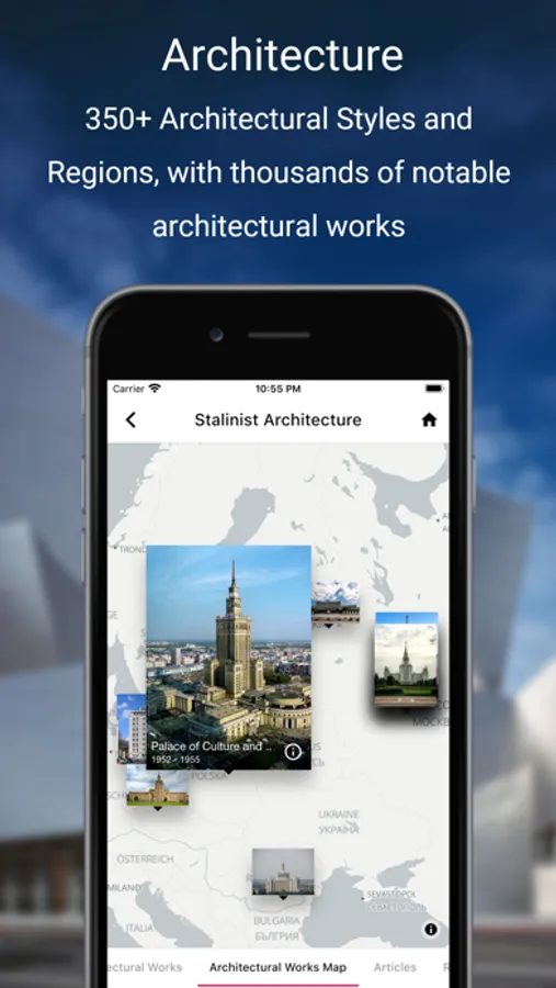 Architecture in USA, France, Canada, Brasil, Morocco, Egypt, China, Austria, Russia, Thailand, Indonesia, and more.