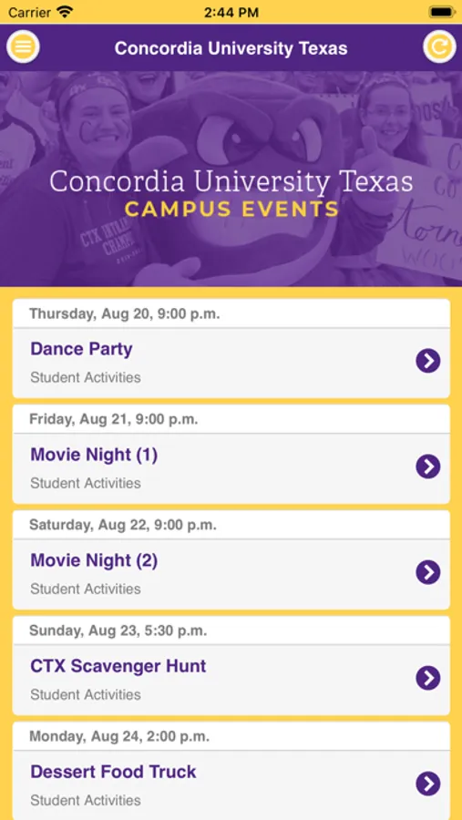 Use the Concordia University - Texas Events app to find out what events are happening and find out how you can get involved on campus!