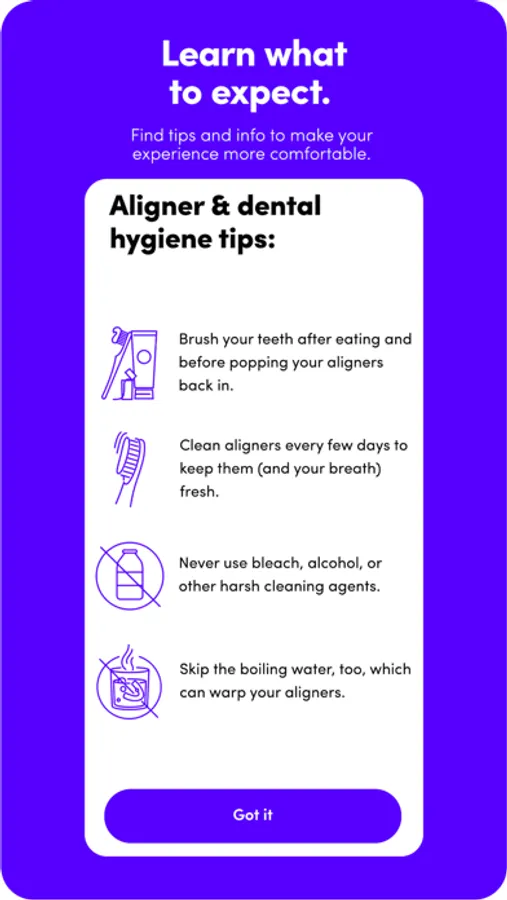 Once you begin your doctor-directed treatment, this app will help you get the best results. It’s the perfect companion for straightening your teeth.