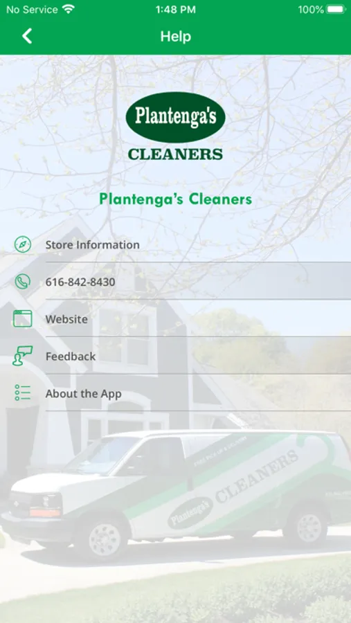 5) Quickly contact Plantenga’s Cleaners by phone or email and access their website all directly from your device.