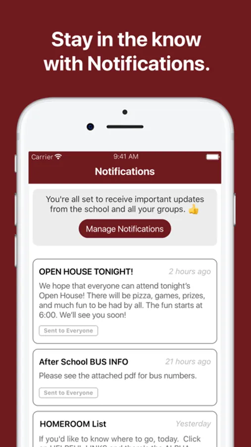 - Get personalized notifications reminding you about events and schedules that are important to you.