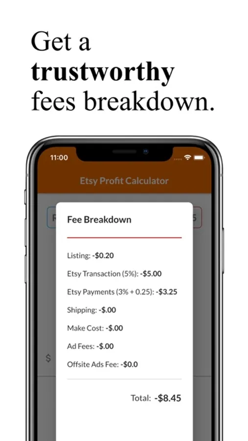 Calculate exactly how much you make after fees as a seller on Etsy.