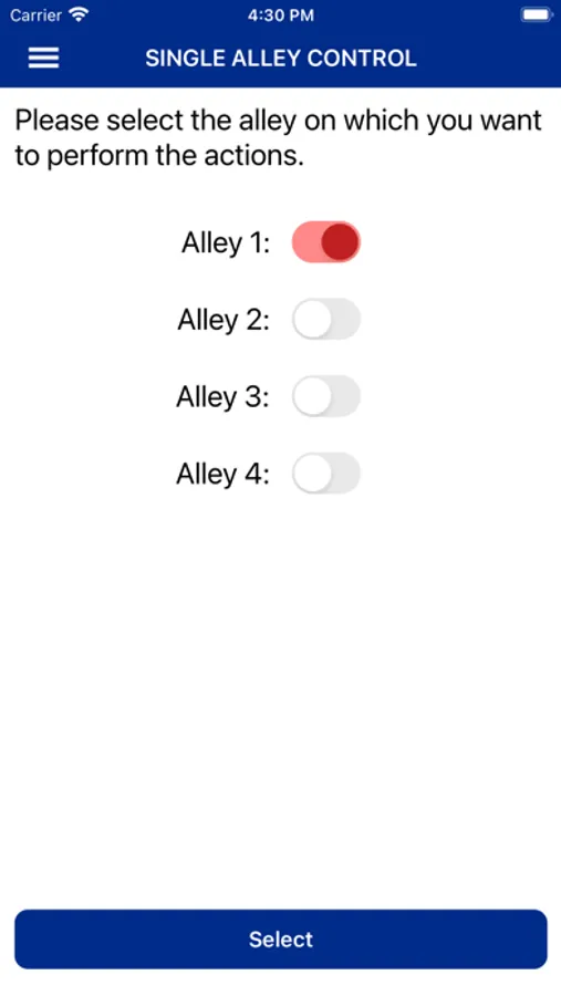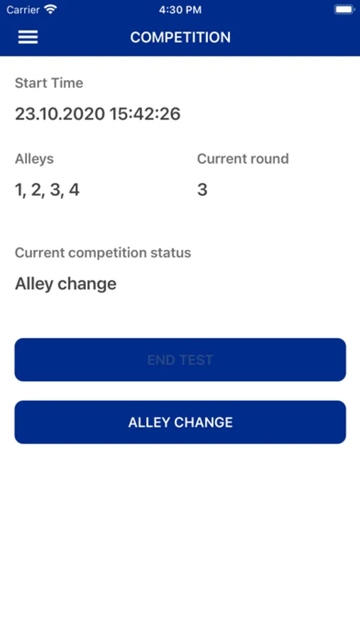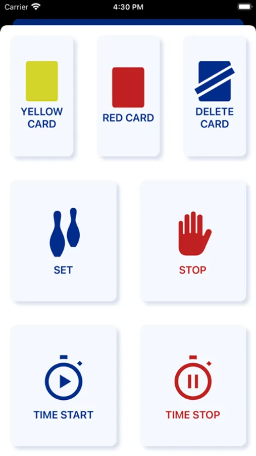 * Control all alleys (stop/set, time start/time stop, place/delete yellow and red cards)