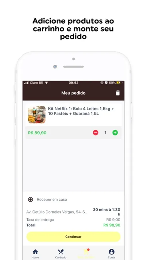 No app, você encontra o cardápio completo dos estabelecimentos e ainda pode utilizar a ferramenta de busca para localizar diretamente os produtos que você deseja. Isso tudo de forma prática e rápida. Além disso, no app você fica por dentro de todas as nossas promoções e tem acesso exclusivos à descontos especiais!