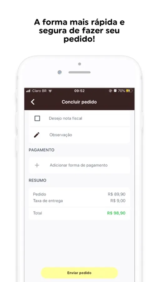 Escolheu seu prato preferido? Utilize agora o campo de observação para que tudo chegue do jeitinho que você gosta, customizando os ingredientes do seu pedido.