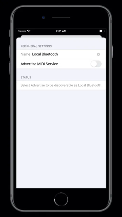 Push connect button and in the opened view turn on the switch button. This will make your device discoverable by your Bluetooth MIDI host, connect it from it and you will can control your MIDI host from B.M.M.